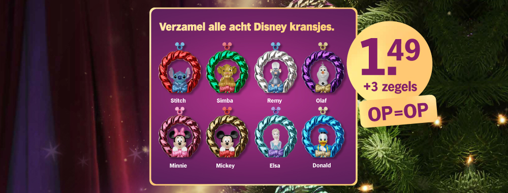 Spaar nu alle 8 Disney kransjes van jouw favoriete figuren.
