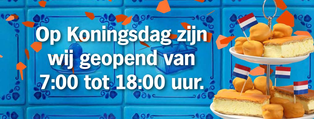 Op Koningsdag zijn wij geopend van 7:00 tot 18:00 uur.